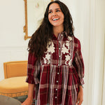 Elegant with a touch of vintage charm, it’s a standout piece that moves effortlessly from day to night. The Faye body-style stuns in deep maroon with delicate white embroidery.